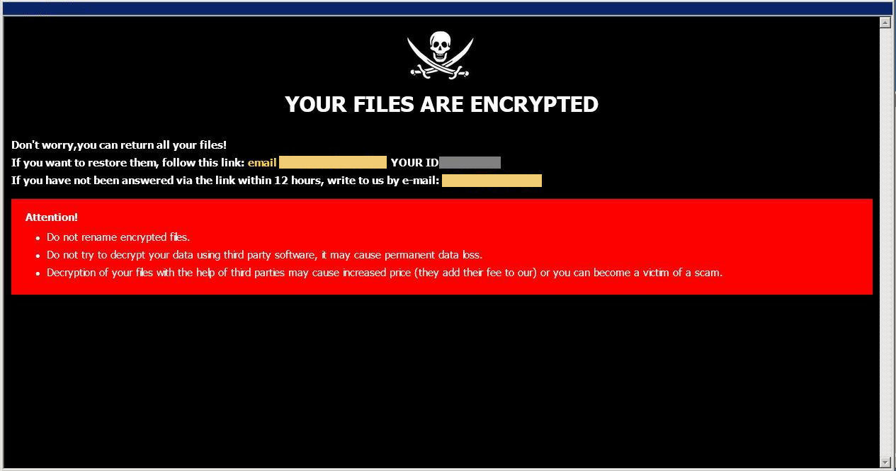 身代金要求ファイルは「FILES ENCRYPTED.txt」「Info.hta」です。